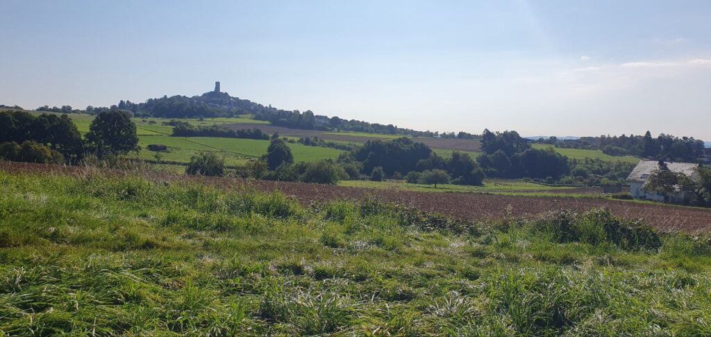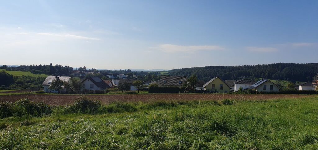 Direkt neben der gemütlichen Sitzgruppe befindet sich eine große Streuobstwiese, auf der verschiedene Gruppen Bäume gepflanzt haben.